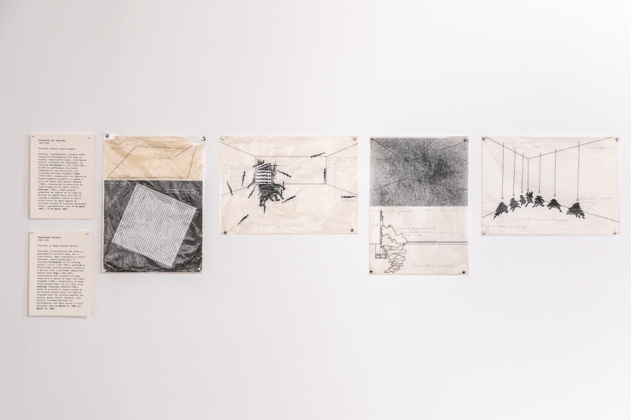 The title references the Polish theater director Jerzy Grotowski, emphasizing the unique and influential nature of Sandoval's performative practice. His work fuses strategies from 1970s performance art (like Austrian Wiener Aktionismus and Vito Acconci’s daily tasks) with a direct reaction to his specific socio-political context. The exhibition spans various media and displays a broad selection of early and recent pieces, such as Acciones individuales (Individual Actions) (1983), which incorporated the hair of dead political prisoners, and his iconic Mugre (Dirt) (1999), where he used the body dirt of a homeless person as pigment on the museum walls.