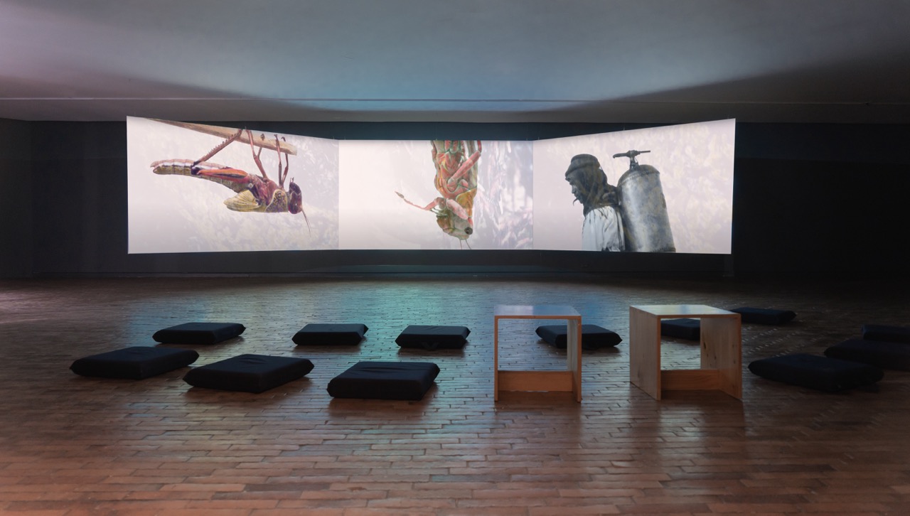 The exhibition displays two new video-based installations: Hippos (2022) and Colony (2021), as well as Guez's photographic series Lilies of the Field (2019), alongside other seminal works. These works emphasize the relationship between colonialism and photography. They unpack how problematic the representation of landscape and vegetation can be if subjugated to Orientalist stereotypes and made to please a Western eye, style, and taste.